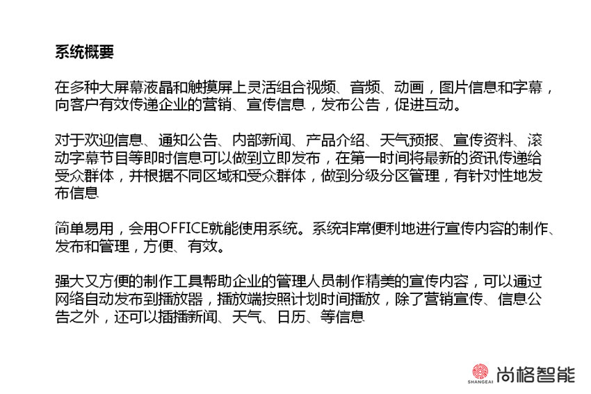 简单易用,会用OFFICE就能使用系统。系统非常便利地进行宣传内容的制作、发布和管理,方便、有效。