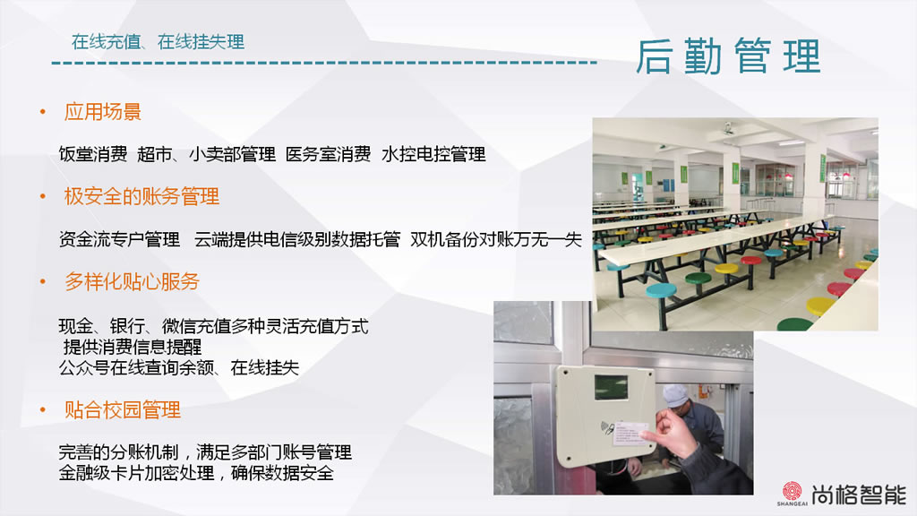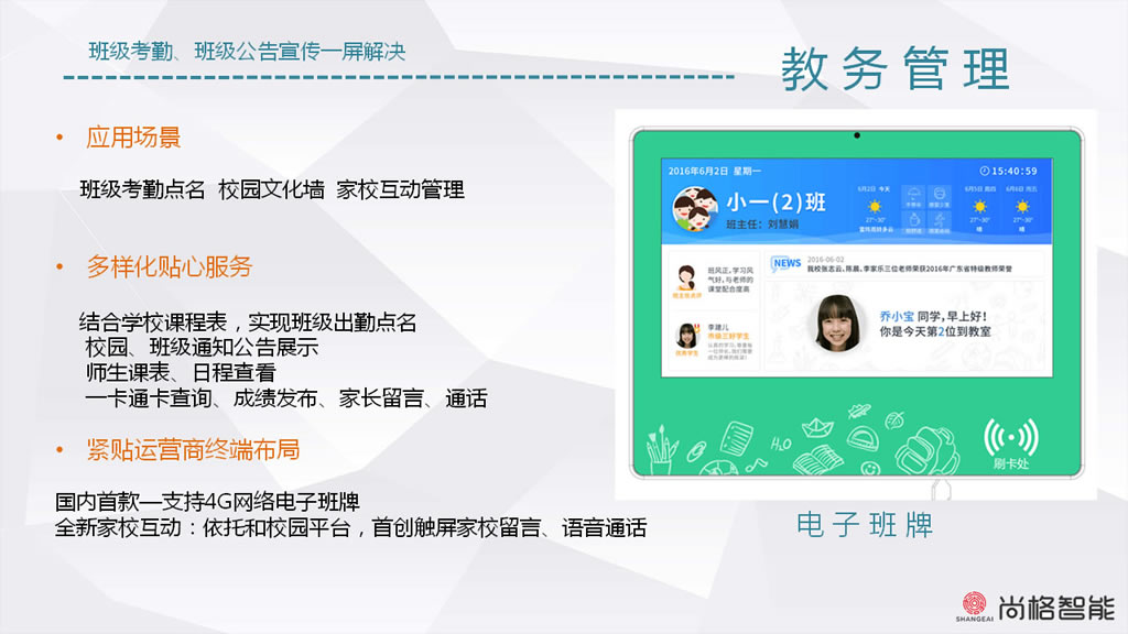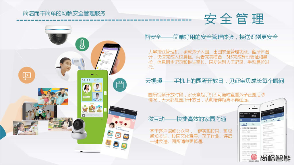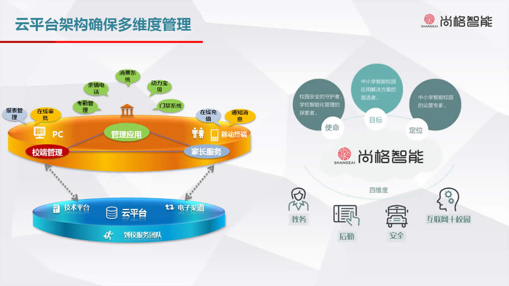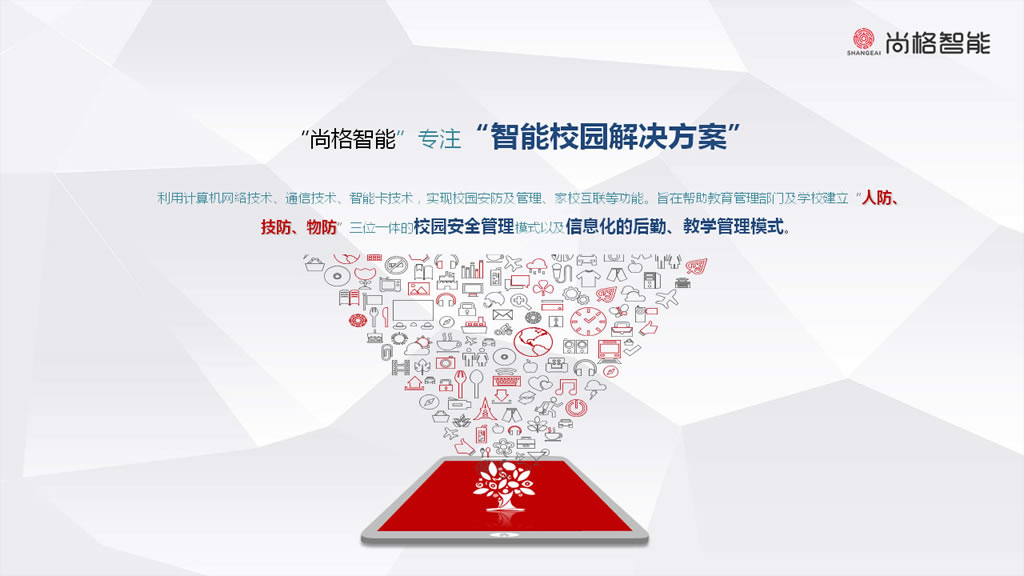 利用计算机网络技术、通信技术、智能卡技术,实现校园安防及管理、家校互联等功能。旨在帮助教育管理部门及学校建立“人防、技防、物防”三位一体的校园安全管理模式以及信息化的后勤、教学管理模式。