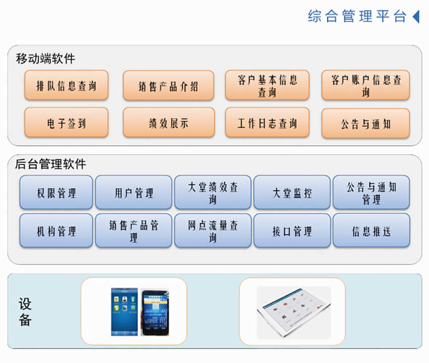 4、信息技术与先进设备的背后应有的流程设计支持、产品体系配套、数据应用处理与网点的运营管理、客户关系管理、服务现场管理相结合;以提升网点营销服务能力为目的,以改善客户体验、节约客户时间、提高服务效率为出发点。
